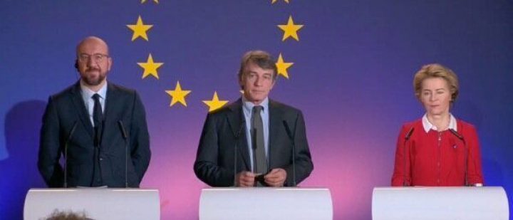 11.07. Arranca el discurso de los presidentes europeos, Ursula von der Leyen, Charles Michel y David Sassoli.