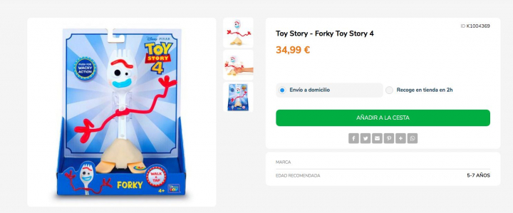 Pero claro, también había versión oficial. Disney creó su propio juguete del personaje: un muñeco pequeño y blanco con forma de tenedor y los ojos saltones. Precisamente, esos ojos pueden suponer un peligro para los pequeños, según la Comisión de Seguridad de Estados Unidos que ha exigido la retirada del producto.