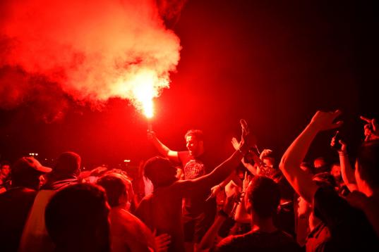 En Marsella, la celebración se cebó con un autobús, que quedó completamente destrozado a pedradas.