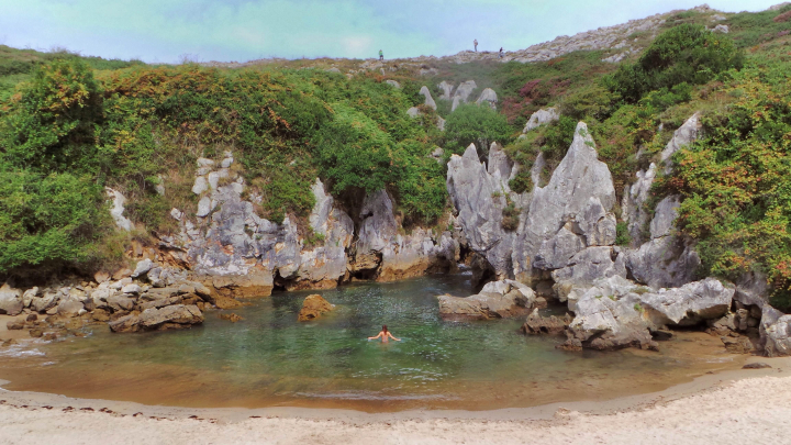 Hasta hace bien poco esta playita de interior de Llanes era una desconocida. Creada a partir de una caverna subterránea con el mar., el lugar es impresionante. Eso sí, ahora está bastante masificado por lo que es más recomendable ir entre semana.