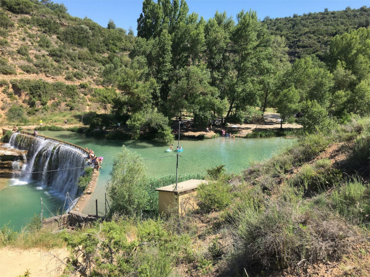 En el impresionante entorno de la Sierra de Guara encontramos este lugar perfecto para los amantes del barranquismo y deportes de aventura. Los más valientes pueden saltar desde lo alto de la presa, los prudentes pueden limitarse a darse un simple baño refrescante.
