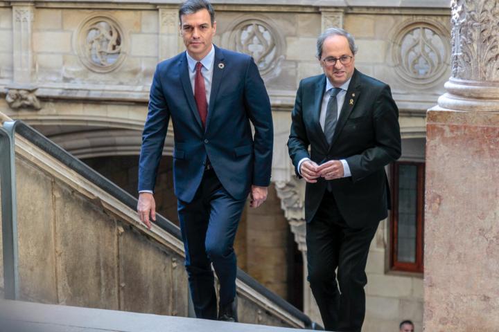 La reunión entre el presidente catalán, Quim Torra, y el jefe del Gobierno, Pedro Sánchez, en el Palau de la Generalitat ha comenzado poco después de las 12.00 horas.