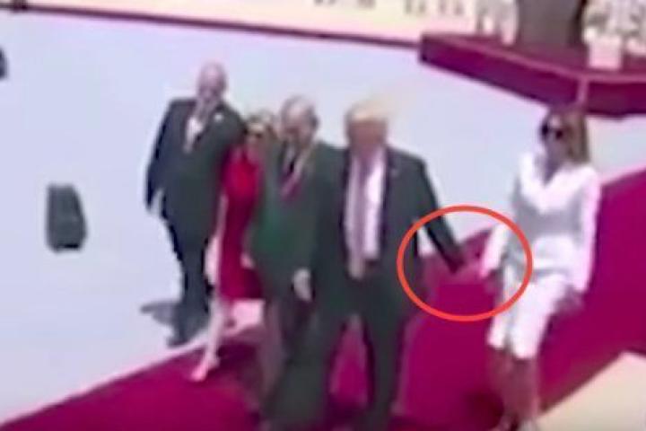 En esta ocasión ha sucedido cuando la pareja presidencial acababa de aterrizar en Jerusalén, segunda parada de su gira internacional. Se acaban de bajar del Air Force One en Jerusalén cuando las cámaras han captado el preciso instante en el que Trump le ofrece su mano a Melania para ir andando juntos, pero ella se la rechaza con una palmada (bastante brusca). El gesto no ha pasado desapercibido.