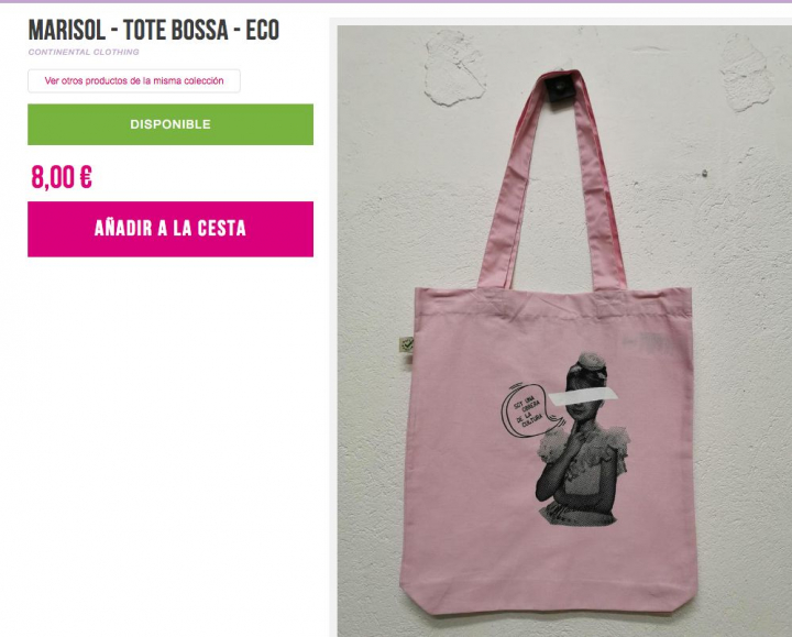 Con ese mismo lema, la web también vende una tote bag rosa de ocho euros.