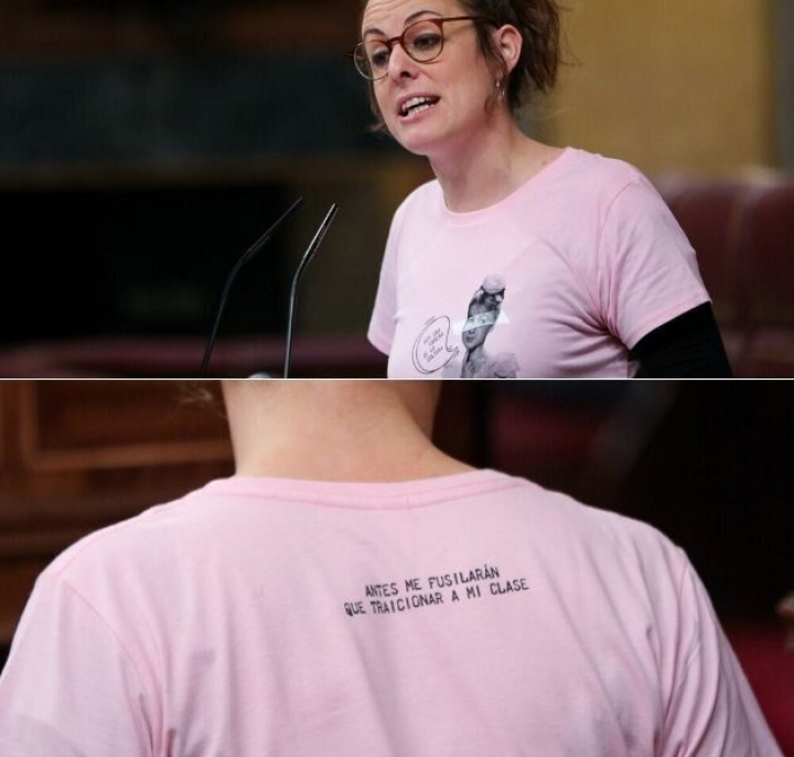La moda también ha entrado este domingo en el Congreso de los Diputados durante la segunda sesión del debate de investidura, y ha sido la diputada de CUP, Mireia Vehí, quien más flashes ha acaparado con su camiseta de Marisol.