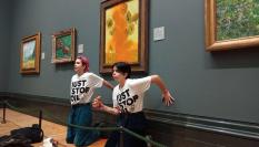 El incidente se produce sólo diez días después de que otras dos componentes de la organización Just Stop Oil, contra el uso de combustibles fósiles ante la crisis climática, protagonizaran una escena parecida lanzando sopa de tomate sobre el cuadro Los girasoles de Van Gogh en la National Gallery de Londres.