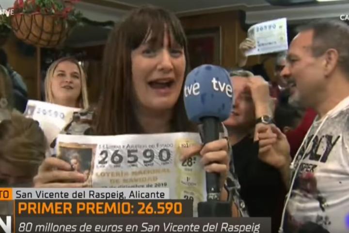 Por ejemplo, la BBC asegura que una periodista española se tuvo que disculpar por su emotiva celebración en directo. Y destaca que les dijo a sus compañeros que al día siguiente no iría a trabajar mientras sujetaba un décimo premiado.