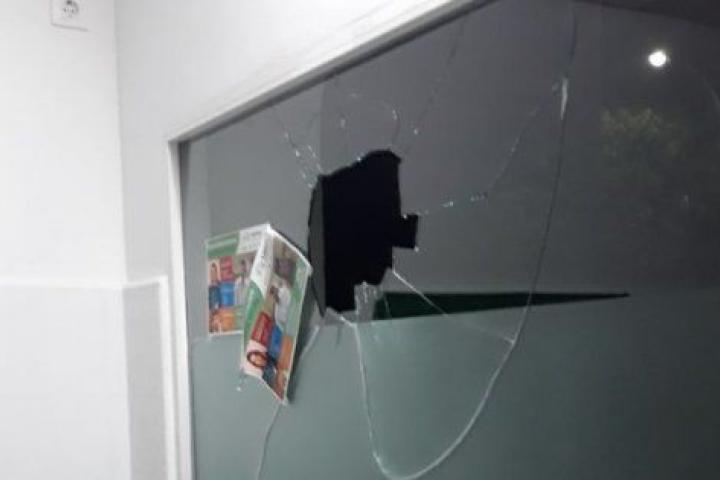 Unos encapuchados en moto lanzaron una piedra de grandes dimensiones contra el cristal del local.