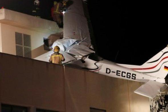 La avioneta se ha incrustado en el techo del edificio, pero no ha provocado daños en su estructura ni ningún tipo de explosión, aunque ha sido preciso movilizar a una grúa para extraer el aparato dada la inestabilidad que presentaba.