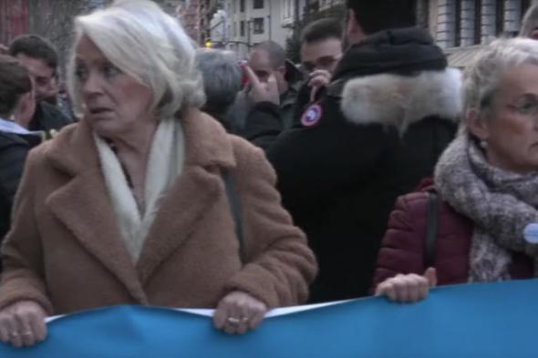 Rosa Rodero y Asun Lasa, en la cabecera de la manifestación en Bilbao.YOUTUBE