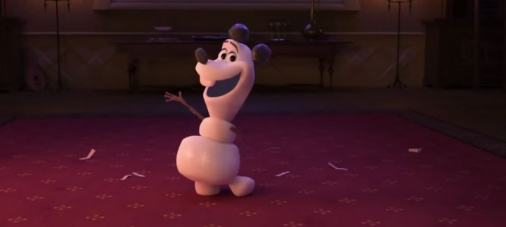 Los muñecos de Anna y Elsa en el flashback con el que arranca la película no son unos juguetes cualquiera. No solo porque están hechos de hielo a partir de los poderes de la hermana mayor, sino porque están inspirados en otras películas animadas. Uno de ellos, un elefante con enormes orejas, recuerda mucho a Dumbo y otro parece estar claramente inspirado en Baymax, el entrañable personaje de Big Hero 6. El tercero en cuestión genera más debate.