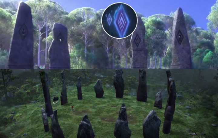Pero la cinta estrenada en 2012 está más presente aún en Frozen 2, concretamente en las cuatro rocas gigantes que abren paso al bosque encantado y que recuerdan al crómlech de rocas que Mérida encuentra en el bosque de Brave. Además, si se presta atención a las piedras de la secuela de Anna y Elsa se ven cuatro símbolos en la parte superior que ya estaban presentes en el cartel de la primera película y en las piezas de hielo del tráiler de la segunda. ¿Estarán ambas cintas en el mismo universo?
