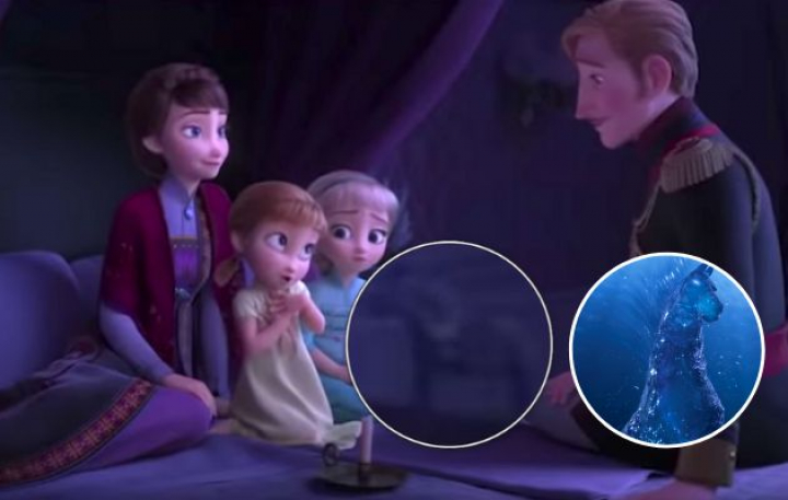 Una de las escenas más impresionantes de Frozen 2 es el enfrentamiento de Elsa con el espíritu del agua, personificado en un caballo de la la mitología nórdica llamado Nokk. Años antes de este enfrentamiento, cuando Elsa era aún pequeña, ya se colaron señales premonitorias sobre este animal. En concreto en el flashback con el que arranca la película, mucho antes de este ese enfrentamiento. Elsa y Anna están en la cama mientras sus padres les cuentan un cuento, en la mesilla de noche se ve una figura: es ese caballo.