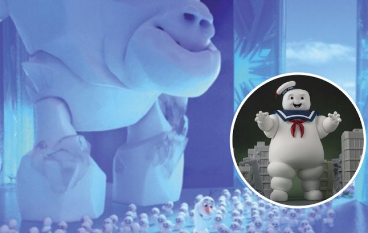 La última referencia a otra cinta clásica se encuentra en la escena postcréditos de Frozen 2, cuando Olaf cuenta con mímica e interpretación parte de Frozen a unos muñecos de nieve y a Merengue, claramente inspirado en Hombre de Malvavisco de Cazafantasmas (1984).