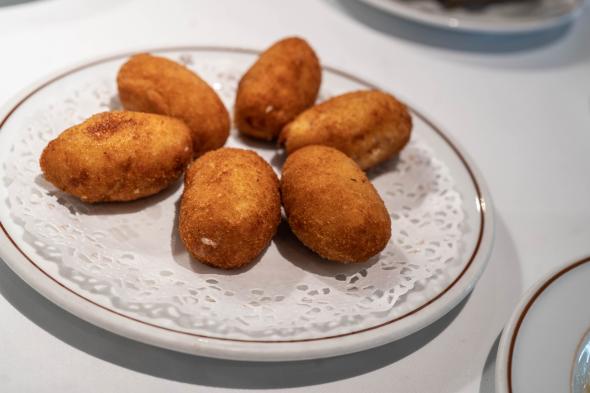 No podíamos empezar con otra cosa que no fuesen las croquetas de Marisa Sánchez, sabor a casa de mi abuela, una masa no tan láctea como la que encontramos en alguno de los restaurantes de alta cocina, pero con un sabor más intenso; en este caso son de jamón, pollo y huevo duro, una auténtica delicia. Sigo con un pimiento cristal caramelizado, patatas y huevo de corral a baja temperatura, finura en el producto para embelesar con esta simple dulzura. El plato fuerte llega con las pochas de temporada a la riojana con fritada de tomate y piparra, sin duda uno de los mejores platos de cuchara que he tomado este año, sólo por esta olla merece la pena el viaje. La parte salada la terminamos con un arroz seco de montaña con codornices y hongos, manteniendo el excepcional nivel de la comida.