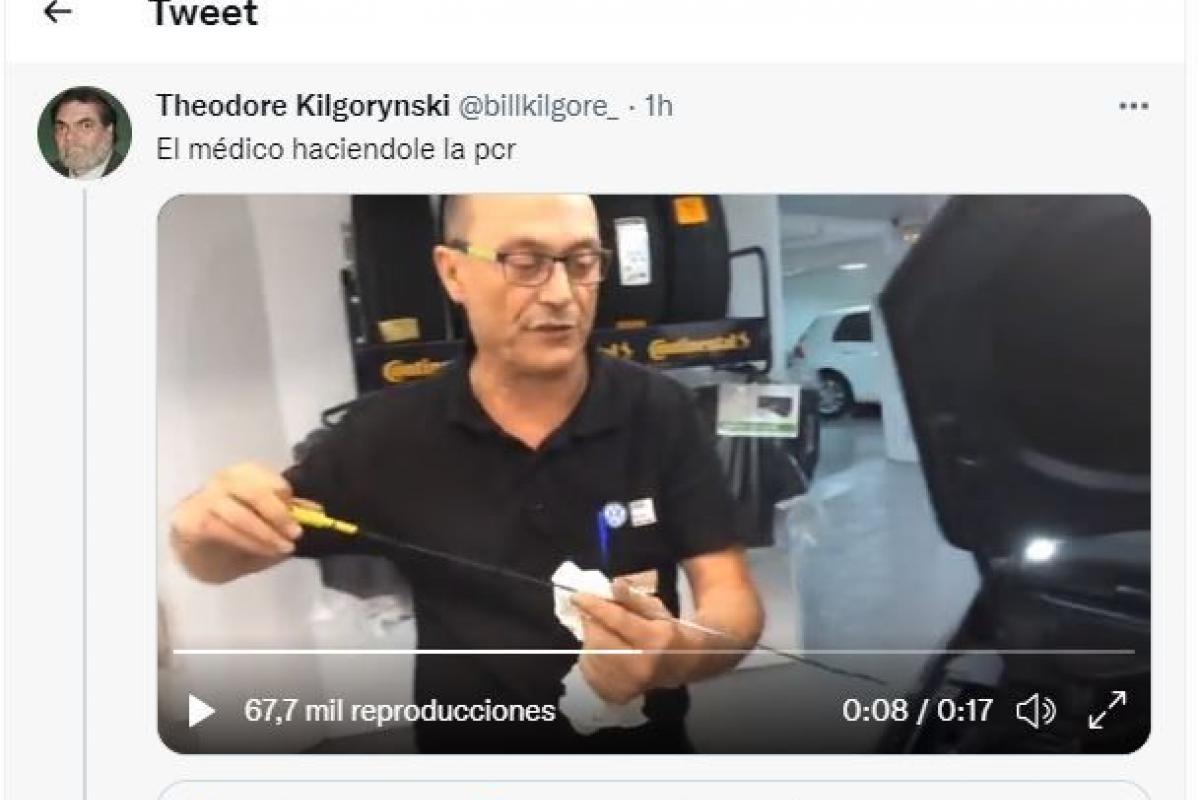 “El médico haciéndole la pcr”, ha escrito junto a esas imágenes, que en apenas dos horas superaban los 9.000 ‘me gusta’ y los 2.000 retuits.