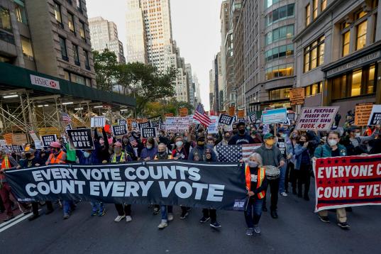 A primera hora de la tarde, cientos de personas más se concentraron en las escaleras de la céntrica Biblioteca de Nueva York, en la Quinta Avenida de Manhattan para denunciar los intentos de Trump de frenar el escrutinio en dos estados clave. También varios centenares de personas han salido a la calle en Filadelfia con el mismo objetivo.