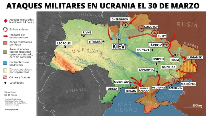 En este sentido, con respecto a los movimientos de Moscú sobre el terreno, el Pentágono ha visto a “menos del 20%” de las tropas rusas que habían estado alrededor de Kiev moviéndose hacia el norte mientras se “reposicionan” en Bielorrusia para que puedan ser reequipadas para una posible acción en el este de Ucrania.
