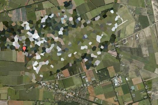 Un hombre identificado como "Dr. Boylan " cree que este area sombreada y otras que ha localizado en Google tienen que ver con emplazamientos relacionados con extraterrestres.