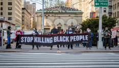 Un grupo de manifestantes en una protesta en Nueva York, Estados Unidos, el 29 de mayo de 2020 en rechazo a la muerte bajo la custodia policial del afroamericano George Floyd.