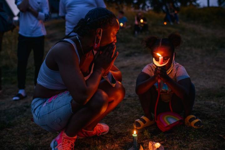 Varias personas de raza negra comparten una oración por el 'Juneteenth' de 2020Brandon Bell via Getty Images