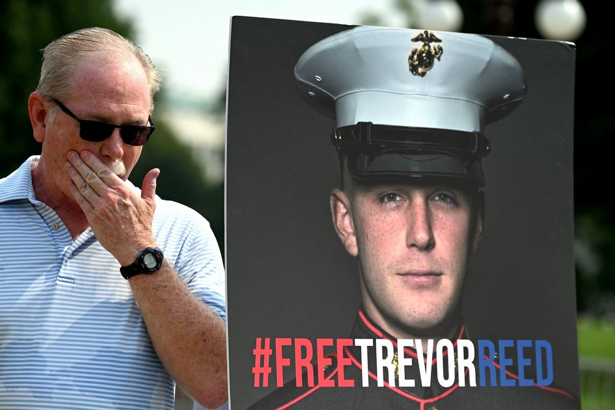 Joe Reed, padre del marine Trevor Reed, el pasado julio ante la Casa Blanca, reclamando la libertad de su hijo. JIM WATSON via Getty Images