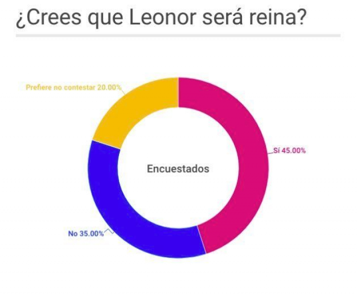 El 45% de los españoles cree que la princesa Leonor llegará a ser reina algún día, frente al 35% que vaticina que no. Las respuestas de los encuestados muestran que los republicanos españoles lo tienen claro, pero no tienen mucha prisa... o muchas esperanzas de que la situación vaya a cambiar en el corto plazo.