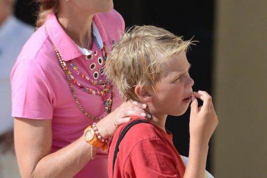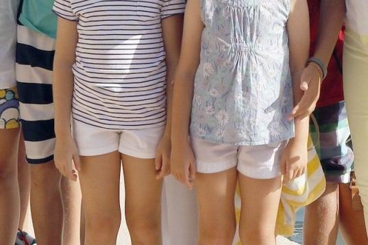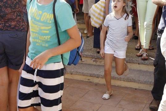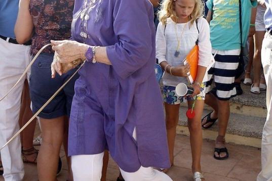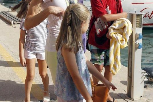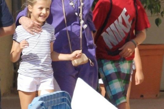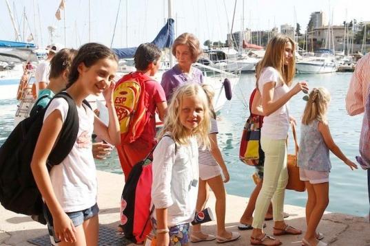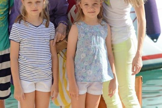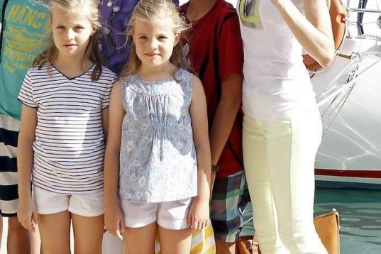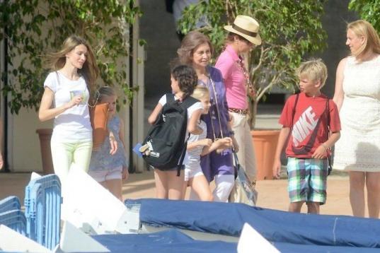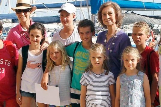 La Reina Sofía (3 por la derecha) con Letizia (dcha.), la infanta Elena ( segunda izda.) y, de izquierda a derecha, los nietos de los Reyes, Felipe Juan Froilán y Victoria Federica (hijos de Elena y Jaime de Marichalar); Irene, Juan Valentin (...