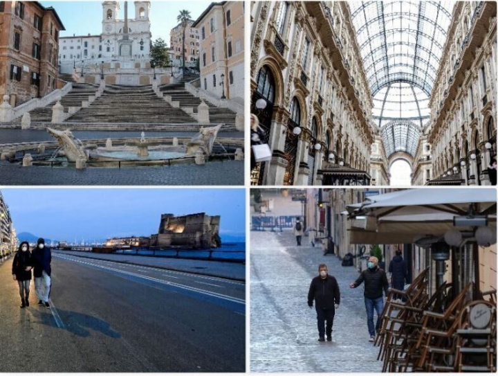 El 2 de marzo, once municipios del norte de Italia fueron identificados como los epicentros de los dos principales grupos de infección y puestos en cuarentena. Fue lo conocido como zona roja: nadie podía entrar ni salir de ellos. El 8 de marzo, el primer ministro, Giuseppe Conte, declaró zona protegida a toda Lombardía y a otras 14 provincias del norte, poniendo a más de una cuarta parte de la población nacional (aproximadamente 16 millones de personas) bajo cuarentena, medida que el día siguiente fue extendida a todo el país. Dos días más tarde, el miércoles 11 de marzo, anunció además el cierre de establecimientos comerciales en toda Italia.
