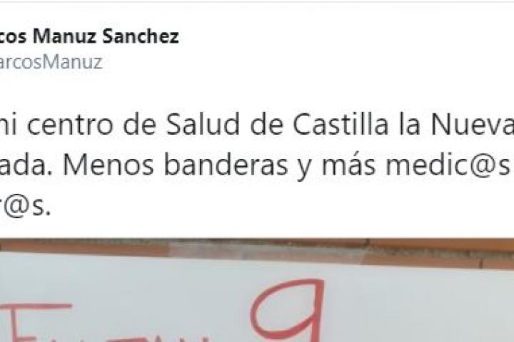 Hoy en mi centro de Salud de Castilla la Nueva Fuenlabrada. Menos banderas y más medic@s y enfermer@s. pic.twitter.com/z6x4EgFgot