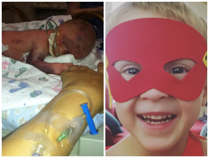 Emmett, de 4 años, aún tiene una cicatriz en la parte posterior del brazo como recordatorio de la dura lucha que tuvo que afrontar como bebé prematuro.