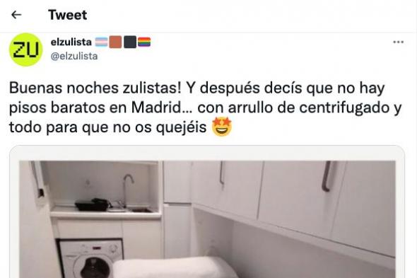 “Buenas noches zulistas! Y después decís que no hay pisos baratos en Madrid… con arrullo de centrifugado y todo para que no os quejéis”, ha escrito El Zulista junto a una foto del anuncio en cuestión