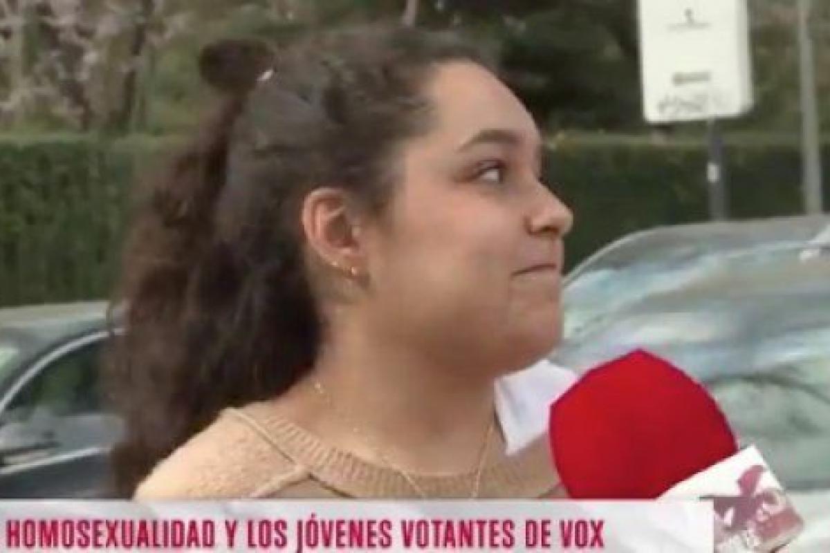 El vídeo de una joven militante de Vox hablando sobre el Día del Orgullo Gay está dando la vuelta a España. David Moreno, reportero de Todo es mentira, el programa de Risto Mejide en Cuatro, salió a la calle a preguntar a jóvenes votantes de Vox por temas como la homosexualidad y la transexualidad.