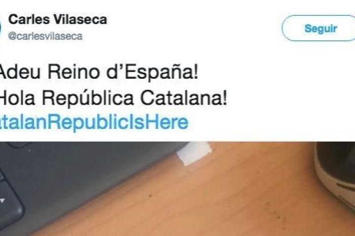 En su afán por cortar lazos con España, Carles Vilaseca ha roto su DNI y lo ha publicado en Twitter junto al mensaje "Adeu Reino d'España! Hola República Catalana!".