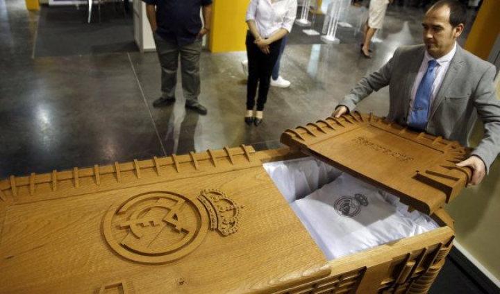 El ataúd del Real Madrid: una réplica del estadio Santiago Bernabéu