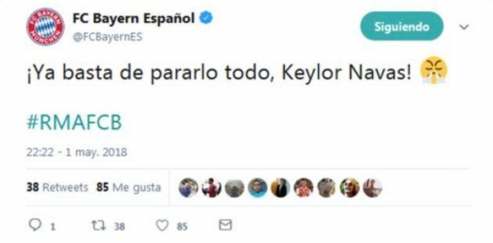 Durante el partido, la cuenta oficial del Bayern de Múnich en español ha publicado un tuit alabando la actuación de Navas. Después han tenido que borrarlo.