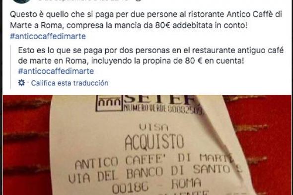 En concreto, el Antico Caffè di Marte cobró a esos dos clientes 349,80 euros por los dos platos de pasta y se añadieron 80 euros como propina obligatoria.