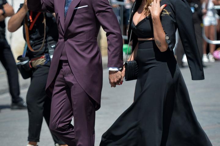 SEVILLE, SPAIN - JUNE 15: Joaquin Sanchez and wife Susan Sabol attend the wedding of real Madrid football player Sergio Ramos and Tv presenter Pilar Rubio at Seville's Cathedral on June 15, 2019 in Seville, Spain. (Photo by Aitor Alcalde/Getty I...Aitor Alcalde via Getty Images