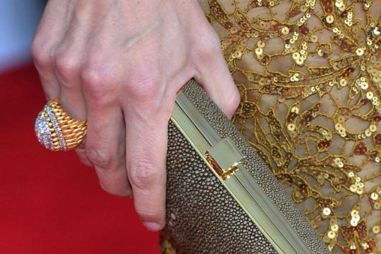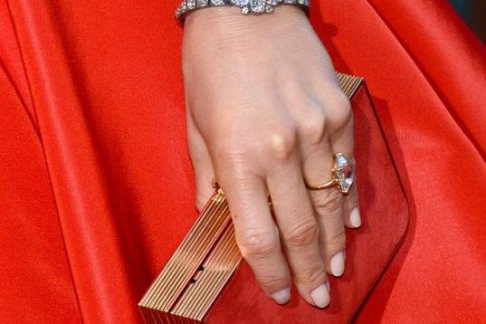 Aunque intentamos centrarnos en el bolso, ese tremendo anillo nos distrae... Ella es una carismática y siempre sonriente actriz que está casada con uno de los grandes ganadores de la pasada temporada de premios.