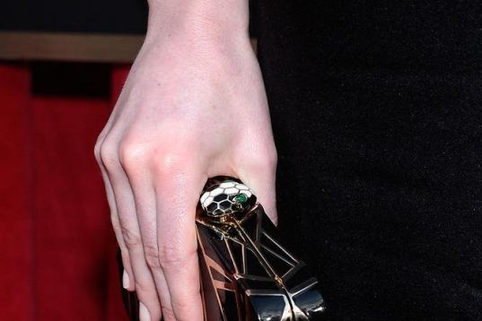 En la misma entrega de premios, muchas famosas decidieron portar un sobrio negro, y lo mismo se reflejó en sus accesorios (excepto en el detalle del anillo, nota en la imagen).