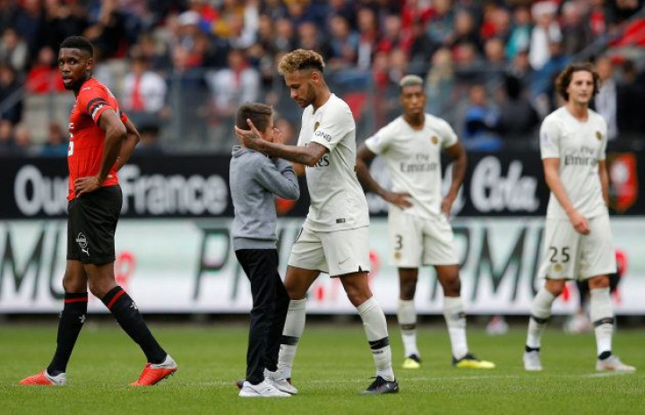 El brasileño Neymar, delantero del París Saint-Germain (PSG), protagonizó el momentazo de este domingo durante el encuentro que su equipo disputó contra el Rennes, que ganó por 3-1, al regalar su camiseta a un niño que se había colado llorando en el terreno de juego.