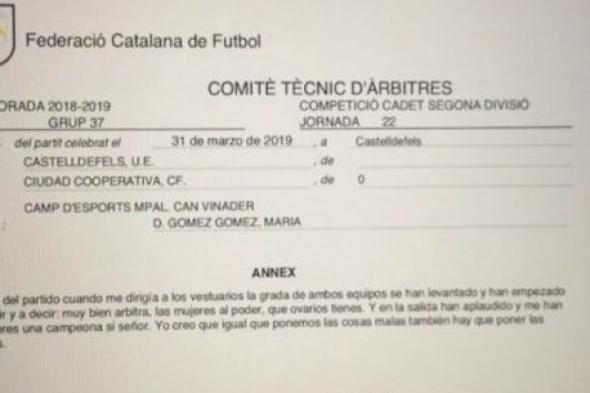 En el acta postpartido, la árbitra de 15 años dejó constancia de las palabras que pudo escuchar en el momento en el que se retiraba una vez terminado el encuentro.