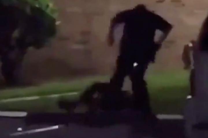 En el video, tomado por uno de los vecinos, se oye a la mujer decirle al oficial "Me estás acosando" y "Estoy caminando hacia mi casa".