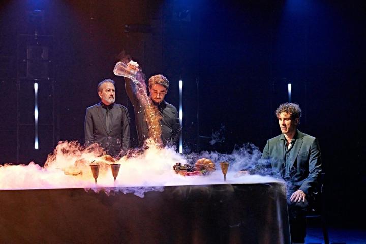 Como la diferencia de edad entre los que tienen la experiencia del poder y los jóvenes enredados en los juegos del amor y el deseo. Como la elección del actor protagonista, Mikel Arostegui Olivar, un atractivo Don Juan, según los cánones actuales de las revistas masculinas, al que se le ha dotado de un punto, un no se qué, desagradable. Un cuerpo que se ofrecerá desnudo al público al inicio de la función y al final entre los alimentos de la gran mesa que ocupa el escenario.
