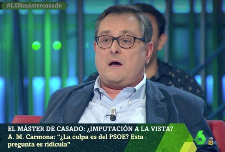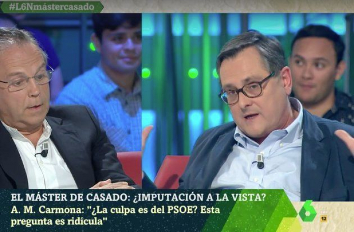 Ocurrió mientras se trataba el tema del máster de Casado y después de que Antonio Miguel Carmona, concejal del PSOE en el Ayuntamiento de Madrid, no dejara hablar a Marhuenda.