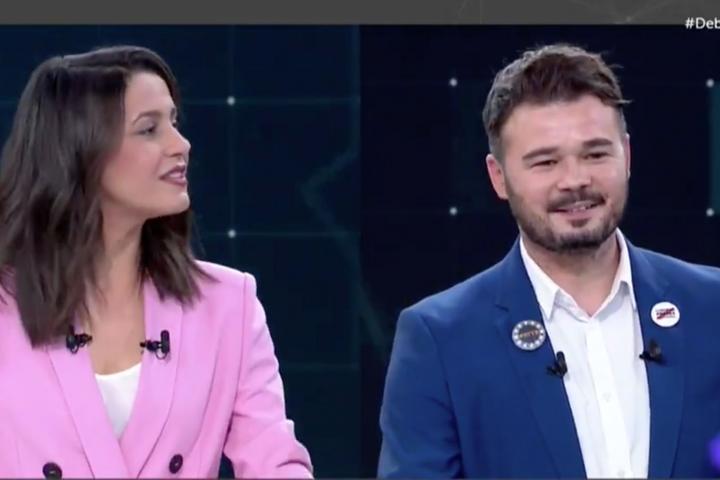 En un segundo plano, Rufián repitió sorprendido el término “chaval” usado por la candidata de la formación naranja.