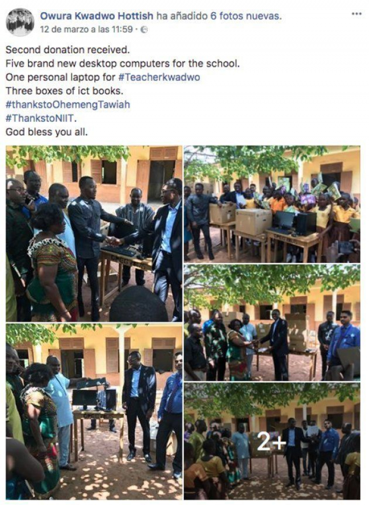 De momento, tal y como el profesor ha publicado en su perfil de Facebook, las donaciones que han llegado son de una escuela de Leeds, en Reino Unido y de una empresa informática de Ghana. En total, seis ordenadores para la escuela.