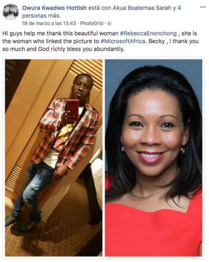 Richard Appiah, invitado por Microsoft a participar en uno de sus eventos para formadores, no se ha olvidado de dar las gracias a Rebecca Enonchong, quien le dio visibilidad a su situación.