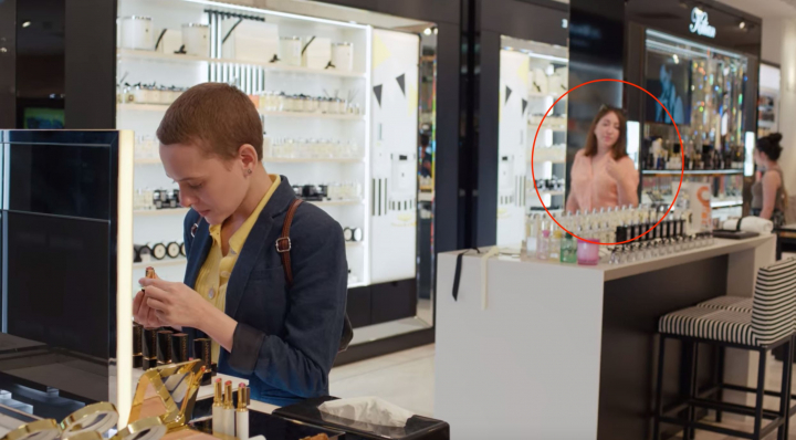 En la imagen Esty y Deborah se encuentran cara a cara en la tienda, pero este trozo de la escena no forma parte del metraje de la serie. No la busques tal cual porque no la vas a encontrar.