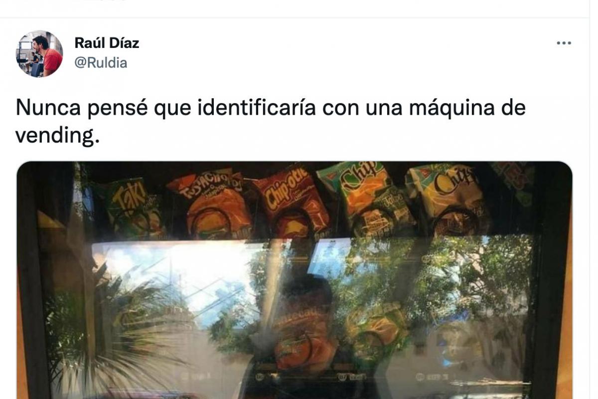 “Nunca pensé que identificaría con una máquina de vending”, ha escrito en su cuenta junto a una foto en la que se puede ver una clásica máquina de comida en la calle en la que hay bolsas de patatas y refrescos.